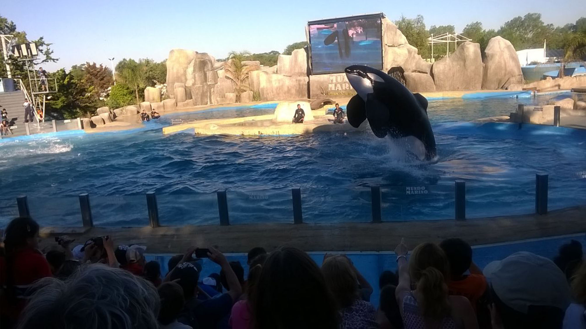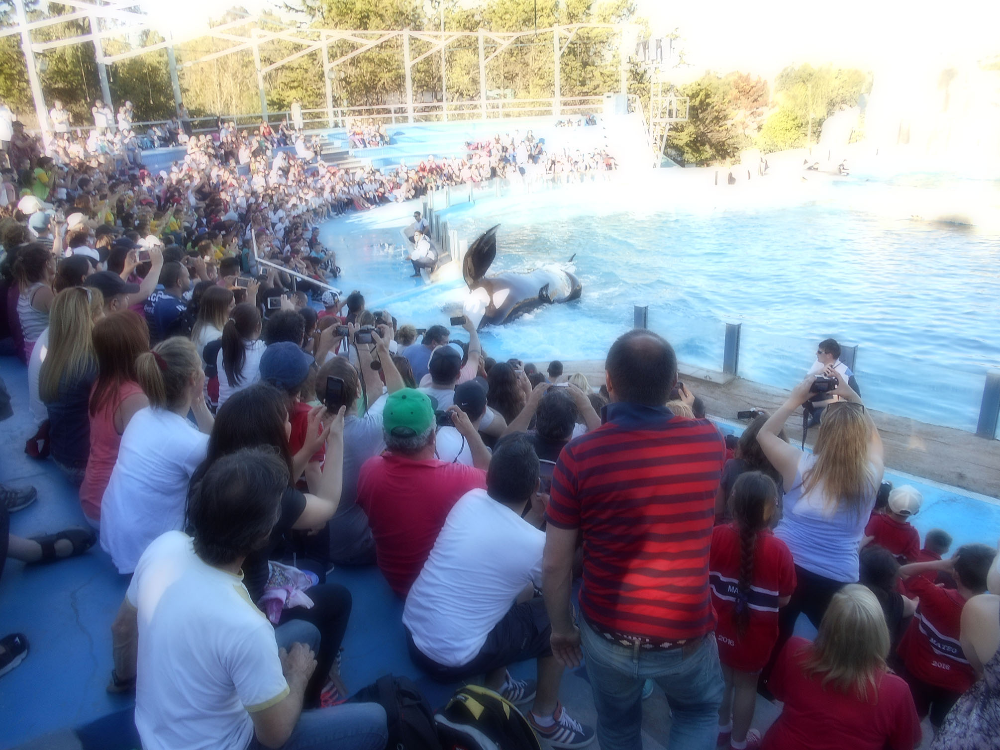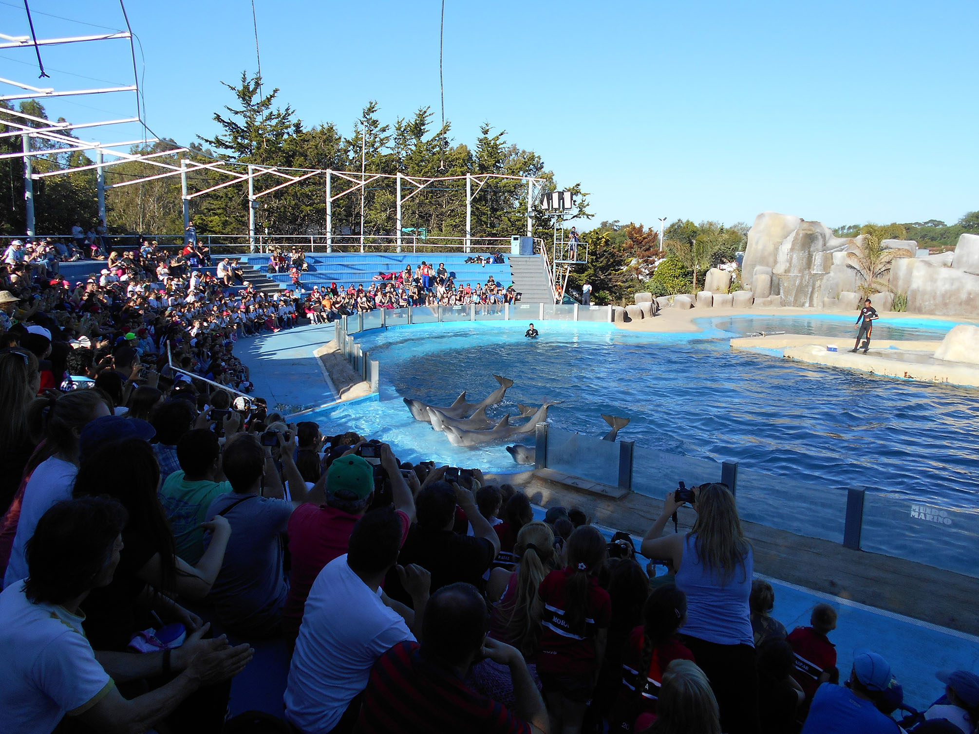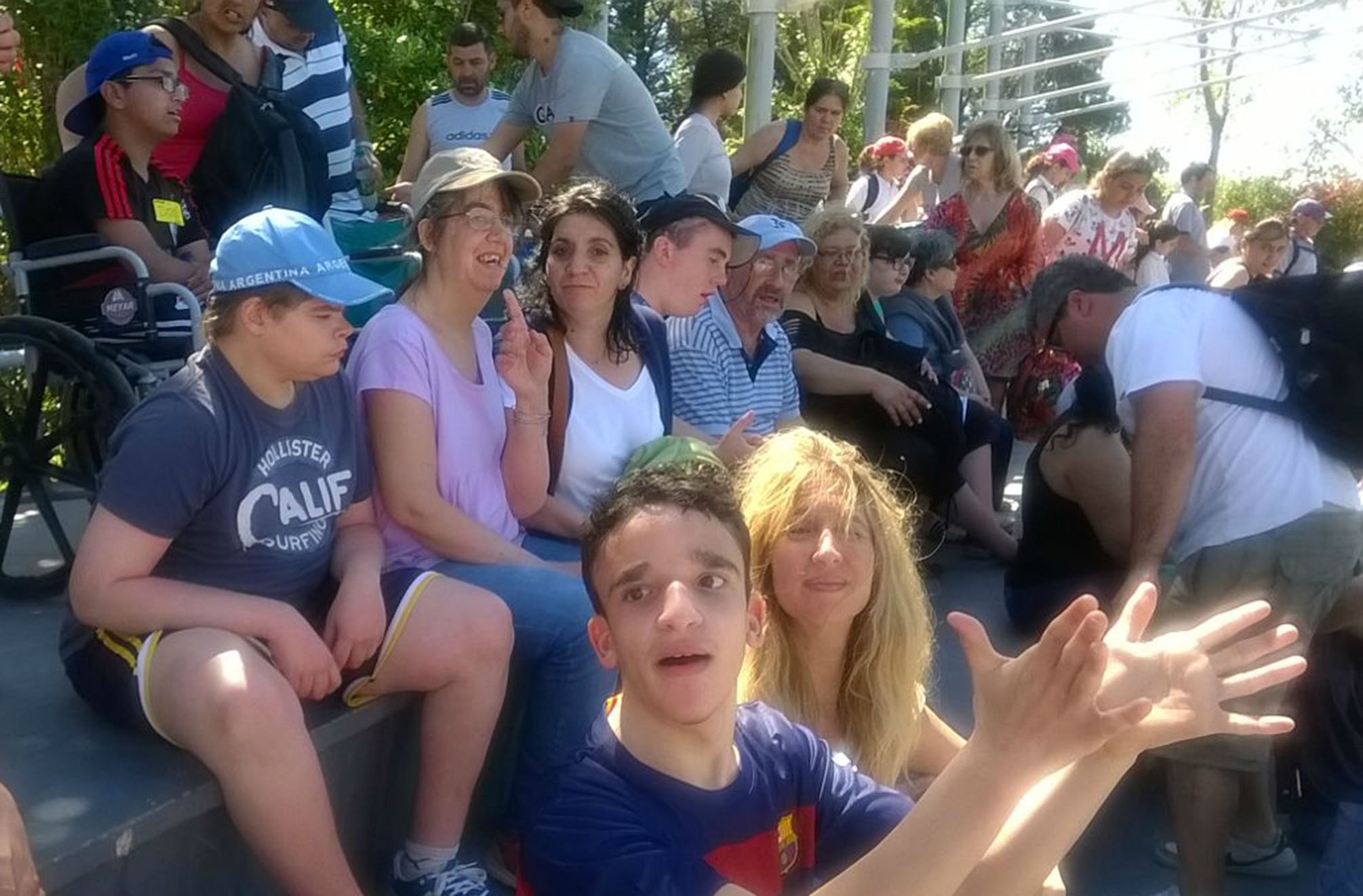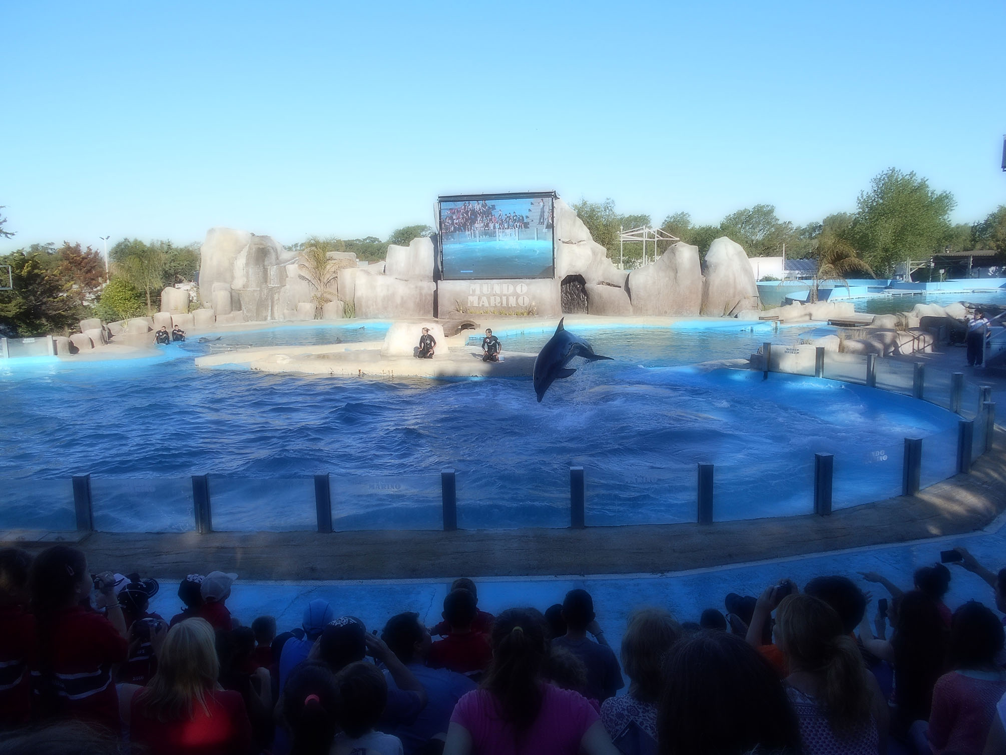 Niños y Jóvenes acompañados por familias, asistentes y personal de Tobías en un viaje a Mundo Marino.